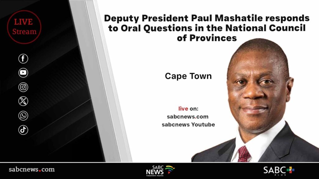 Deputy President Paul Mashatile’s livestream. Deputy President Paul Mashatile responds to Questions for Oral Reply in the National Council of Provinces (NCOP). LIVESTREAM: