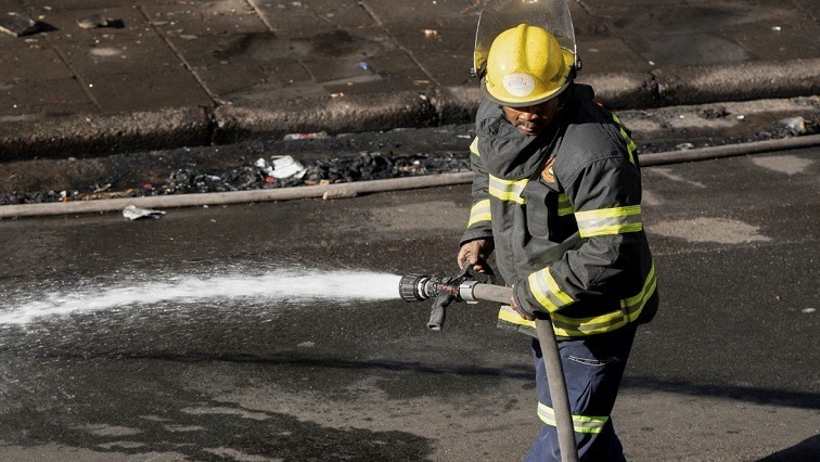 File Image of an EMS firefighter extinguishing a blaze. Three shops have been gutted by a fire in Johannesburg. Firefighters responded to the incident at the corner of Bree and Small streets in the city center. Emergency Services officials say no injuries have been reported. Johannesburg EMS spokesperson Xolile Khumalo says the cause of the…